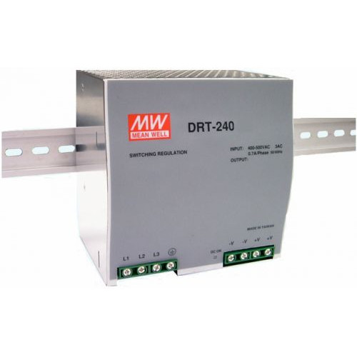 Блок питания Mean Well DRT-240-24 На DIN-рейку 240 Вт, 24 В, 10 А (AC/DC Преобразователь)Входной диапазон 340~550В АС (трехфазное), DRH-120 (двухфазное)